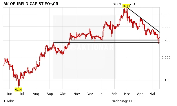Auch DER AKTIONÄR bleibt für die Aktie der Bank of Ireland grundsätzlich zuversichtlich gestimmt. Vor einem Einstieg sollte nun allerdings noch abgewartet werden, bis der Abwartstrend durchbrochen werden kann.
