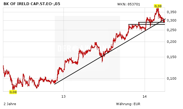 Die Expansionspläne sind ein weiteres Anzeichen dafür, dass die Bank of Ireland die Krise hinter sich gelassen haben dürfte. Fundamental betrachtet bleiben die Aussichten für die Bank of Ireland weiterhin gut. Allerdings hat sich das Chartbild kürzlich allerdings etwas eingetrübt. Ein Neueinstieg drängt sich daher vorerst noch nicht auf. Wer bereits investiert ist, beachtet den bereits mehrfach nachgezogenen Stoppkurs bei aktuell 0,26 Euro.