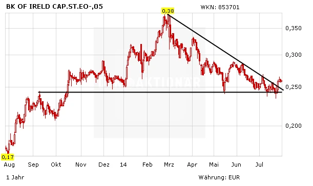 Die Bank of Ireland bleibt eine Wette auf eine Fortsetzung der Erholung der irischen Volkswirtschaft. Da es diesbezüglich derzeit gut aussieht und sich das Chartbild zuletzt aufgehellt hat, können Anleger jetzt wieder zugreifen. Der Stopp sollte bei 0,21 Euro platziert werden.
