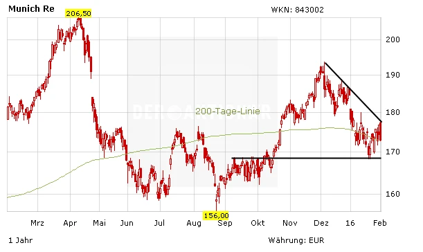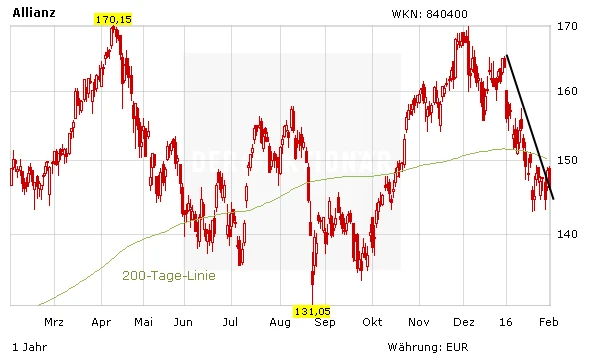 DER AKTIONÄR hält sogar noch höhere Kurse für möglich und hat ein Kursziel von 215 Euro für die Munich-Re-Aktie. Anleger können nach dem Ausbruch aus dem Abwärtstrend zugreifen. Der Stopp sollte bei 157,50 Euro platziert werden. Ähnlich sieht die Einschätzung des AKTIONÄR für die Allianz aus. Anleger platzieren lediglich bei 133 Euro etwas tiefer.