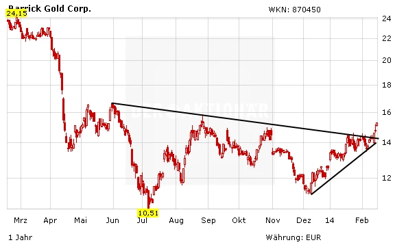 Die Aktie des weltgrößten Goldproduzenten Barrick Gold hat trotz schwacher Quartalszahlen zuletzt deutlich zulegen können. Auch aus charttechnischer Sicht hat sich die Lage gebessert. Zwar konnten in der zweiten Reihe einige Werte noch deutlichere Zuwächse verzeichnen. Doch auch bei Barrick ist das Ende der Fahnenstange noch nicht erreicht.