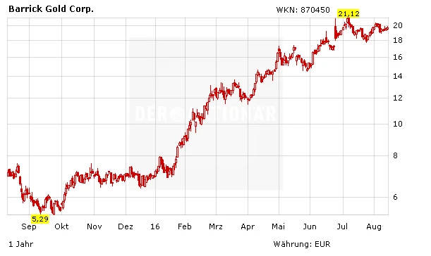 Die Aktie des weltgrößten Goldproduzenten Barrick Gold konsolidiert derzeit ein wenig ihren steilen Anstieg. Natürlich nimmt der eine oder andere Anleger auch Gewinne mit. Schließlich hat das Papier eine schier atemberaubende Rallye auf das Parkett gelegt. Doch die Rallye der Aktie ist nur auf den Goldpreisanstieg zurückzuführen.