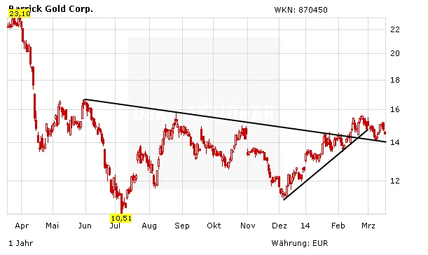Die Aktien der Goldproduzenten sind im gestrigen Handel deutlich unter Druck geraten. Und auch heute geht es im Gleichschritt mit dem Goldpreis weiter nach unten. Vor allem die Entspannung im Krimkonflikt sorgt für Druck auf dem Goldpreis. Der sichere Hafen ist plötzlich nicht mehr gefragt.