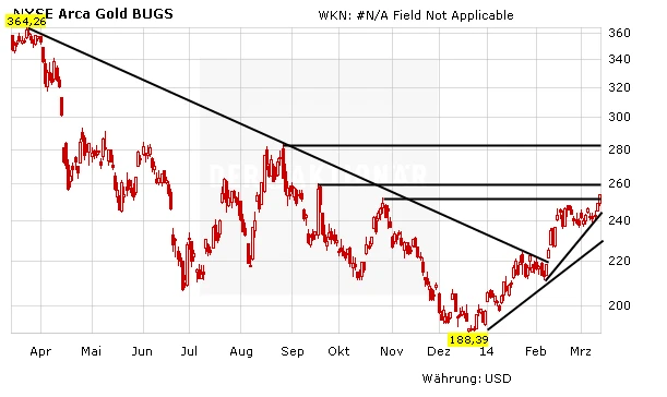 Der Goldpreis verharrt heute nahezu regungslos. Doch bei den Goldminenaktien steppt der Bär – oder besser gesagt der Bulle. Die Aktien brechen ganz allmählich aus ihrem Dornröschenschlaf aus und liefern Kaufsignale. Das Comeback der Minenaktien – von vielen Analysten nicht für möglich gehalten – nimmt seinen Lauf.