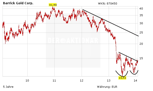Das bedeutet nicht, dass die Aktien mittlerweile gegenüber einem Goldpreisrutsch immun sind. Nein, aber die Aktien haben dermaßen an Wert verloren, dass ein schwacher Goldpreis hinlänglich eingepreist ist. Entsprechend dürften auch die schwachen Zahlen, die die Unternehmen ab kommender Woche vorlegen werden, keine großen Enttäuschungen bei den Anlegern mehr hervorrufen. Der Blick wird sich mehr auf die Einsparungen richten, die die Konzerne mittlerweile vorgenommen haben und die die Produktionskosten nach unten drücken – und damit letztlich auch bei einem niedrigeren Goldpreis die Margen wieder steigen lassen.