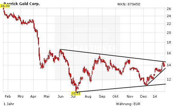 Das Chartbild hat sich gestern eingetübt. Dennoch: Die Aktie von Barrick Gold ist eine interessante Depotbeimischung. Die Stimmung für den Goldpreis und auch Goldminenaktien ist ausgesprochen negativ. Das könnte durchaus der Nährboden für eine nachhaltige Erholung sein. Investierte Anleger bleiben an Bord. Der Rücksetzer bietet noch nicht investierten Anlegern die Möglichkeit zum Aufbau einer ersten Position.