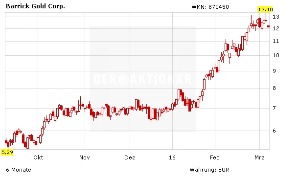 Dennoch: Die Wall Street entdeckt Gold gerade wieder. Und aus diesem Grund könnte ein Rücksetzer eine gute Kaufgelegenheit für Anleger sein, die noch nicht investiert sind. Gold hat gute Chancen, den Bärenmarkt im laufenden Jahr zu beenden. Die Aktie von Barrick Gold befindet sich auch im Aktien-Musterdepot des AKTIONÄRs.