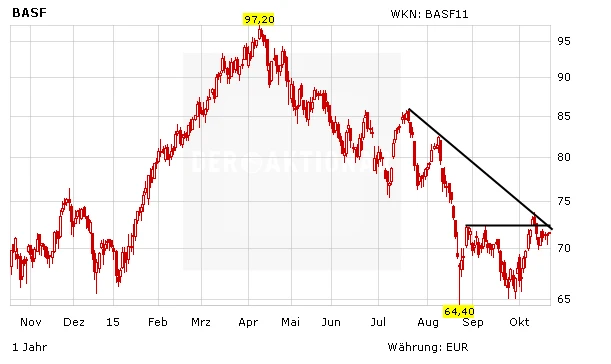Hingegen hat das US-Analysehaus Bernstein Research die Einstufung für die BASF-Aktie vor Zahlen auf "Outperform" mit einem Kursziel von 97 Euro belassen. Analyst Jeremy Redenius betonte, ein Preisanstieg bei petrochemischen Produkten sowie Währungseffekte könnten die Geschäftsentwicklung des Chemiekonzerns im dritten Quartal positiv beeinflusst haben. Er rechnet mit einem Anstieg des operativen Ergebnisses (Ebitda) von vier Prozent.