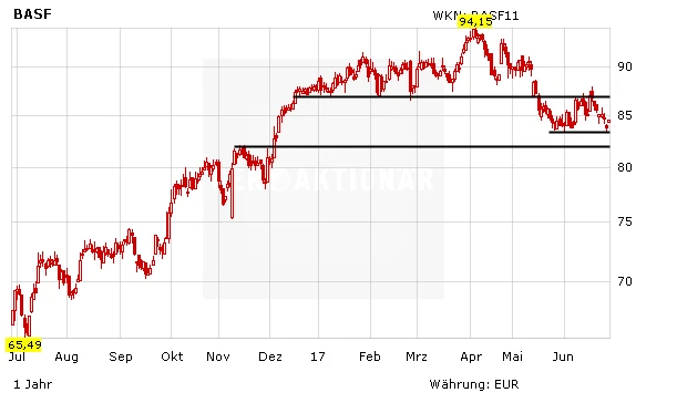 So hat BNP-Paribas-Analyst James Knight sein Anlagevotum mit „Outperform“ und das Kursziel mit 96,00 Euro bekräftigt. Er bewertet die Investition ins Batteriegeschäft positiv, räumt aber ein, dass der Effekt vorerst eher gering sein dürfte. Zudem hat etwa die UBS die Kaufempfehlung für die DAX-Titel bestätigt. Analyst Andrew Stott betont, dass sich für BASF im Zuge der Übernahmewelle im Chemiesektor nun gute Möglichkeiten ergeben würden. Er sieht den fairen Wert der Aktie nach wie vor bei 99,00 Euro, was knapp 15 Euro über dem aktuellen Kursniveau liegt.