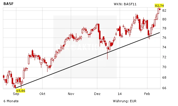 Mit einer Dividendenrendite von 3,5 Prozent und einem KGV von 14 ist BASF für einen Weltkonzern nach wie vor attraktiv bewertet. Die Aktie kann auch charttechnisch wieder überzeugen. DER AKTIONÄR sieht ein Kursziel von 95 Euro nach wie vor absolut gerechtfertigt.