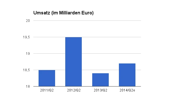 Die Analysten sind insgesamt optimistisch. Für das zweite Quartal rechen die von der Nachrichtenagentur Bloomberg befragten Analysten im Schnitt mit einem Umsatzanstieg um 300 Millionen auf 18,7 Milliarden Euro. Der Gewinn pro Aktie dürfte um fast 0,3 auf 1,70 Euro im Vergleich zum Vorjahr gestiegen sein.