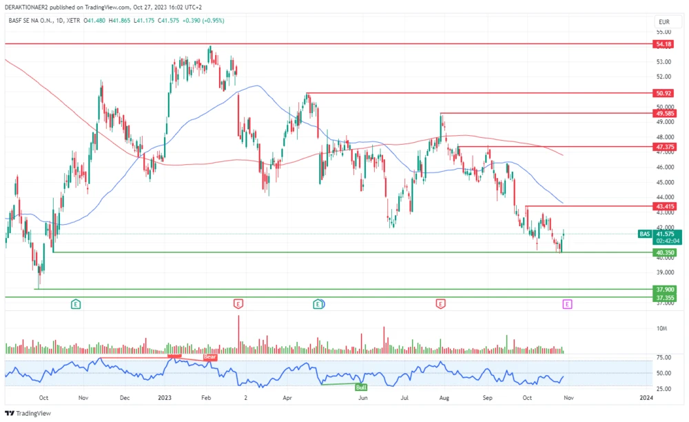 Zyklische Aktien wie BASF haben es aufgrund der angespannten Konjunktur, hohe Energie- und Finanzierungskosten unverändert schwer (DER AKTIONÄR berichtete). Der Chart ist weiterhin angeschlagen, aber aktuell versuchen die Bullen, den Kurs oberhalb der psychologisch wichtigen 40-Euro-Marke zu stabilisieren. Ein erster wichtiger Schritt ist gemacht, der Kurs notiert über 3,5 Prozent fester in den vergangenen 24 Stunden.