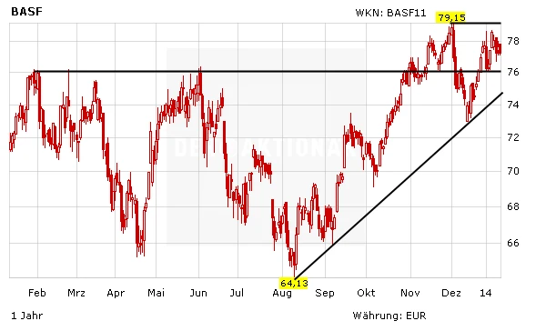 So gingen etwa die Markterwartungen für 2014 von einem Umsatzwachstum im Sektor von fünf Prozent aus, bei BASF aber trotz positiver Einflüsse durch die Statoil-Transaktion nur von drei Prozent. Der Experte sieht bei BASF verstecktes Wertepotenzial. Zusammen mit weiteren Bilanzverbesserungen könnte dies der Aktie zugute kommen.
