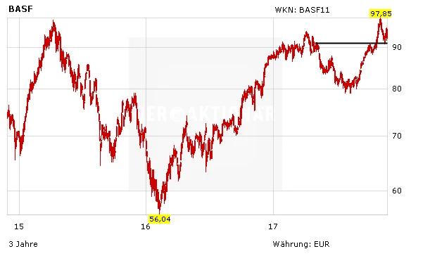 Das Gros der Marktteilnehmer bewertet die Bündelung der Öl- und Gasaktivitäten mit DEA ganz klar positiv. Durch den heutigen Kurssprung notiert die BASF-Aktie nun nur noch knapp drei Prozent unter dem bisherigen Allzeithoch bei 97,90 Euro. Die Aussichten, dass der DAX-Titel bald ein weiteres starkes Kaufsignal generiert, stehen gut. DER AKTIONÄR hält vor diesem Hintergrund weiter an seiner Kaufempfehlung fest (Stopp: 72,00 Euro).