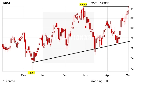 Die BASF-Aktie bleibt ein Basisinvestment. Der Chemie-Weltmarktführer verfügt über eine solide Bilanz, ein starkes Management und gute Aussichten. Zudem bleibt der Wert mit einer starke Dividendenrendite von 3,3 Prozent und einem KGV von 12 für Anleger attraktiv. Die guten Zahlen dürften der Aktie zudem weitern Schwung geben. Kurse im Bereich von 95 Euro wären durchaus gerechtfertigt.