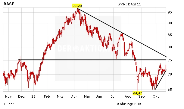 In den vergangenen Monaten hat sich die Aktie des Chemieriesen BASF nur mäßig entwickelt. Seit dem Allzeithoch im April hat der DAX-Titel rund 25 Prozent verloren. Damals notierte die Aktie noch bei knapp 100 Euro. In den vergangenen Tagen ging es für den Weltmarktführer aber wieder aufwärts. Am Donnerstag zählt BASF erneut zu den stärksten Werten im deutschen Leitindex.