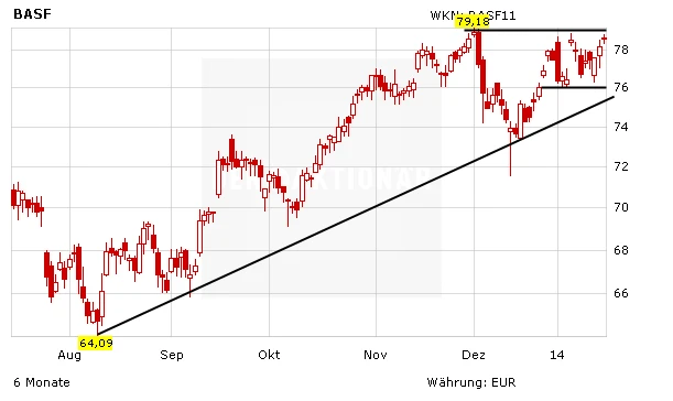 Der Chemieriese hat im Vergleich zum DAX noch enormes Aufholpotenzial. Das sehen die Experten von Morgan Stanley, die jüngst das Kursziel von 83 Euro auf 90 Euro angehoben haben. BASF sollte 2014 weiter von der steigenden Chemienachfrage profitieren. Auch Thomas Gilbert, Analyst der UBS, schätzt, dass der Gewinn von BASF in diesem Jahr steigen dürfte, nachdem er drei Jahre lang stagnierte. Dabei sollte BASF beim Umsatz schneller wachsen als die Konkurrenz.