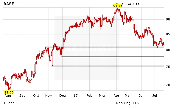 Indes hat sich das Chartbild nach dem Bruch der Unterstützung bei 80,90 Euro weiter eingetrübt. Die nächsten Marken, die der BASF-Aktie Halt geben könnten, liegen bei 77,80 Euro und im Bereich um 75 Euro. Tradingorientierte Anleger können jetzt verkaufen, langfristig orientierte Anleger beachten einfach weiter den Stopp bei 68,00 Euro. Noch nicht investierte Anleger sollten nach wie vor an der Seitenlinie verharren.