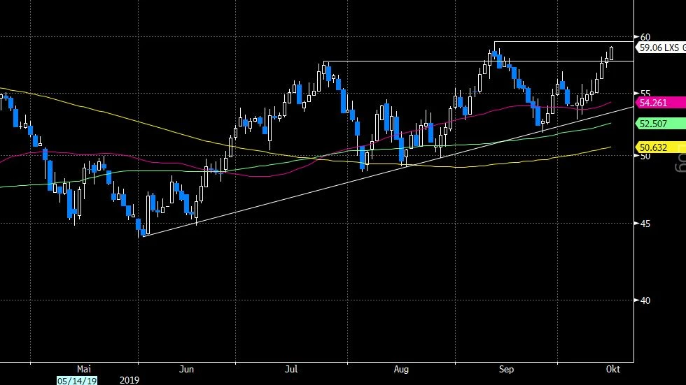 Bei Lanxess sieht es derzeit sowohl in Hinblick auf die operative Geschäftsentwicklung als auch auf das Chartbild am besten aus. Anders als bei BASF und Covestro dürfte der von Analysten erwartete Gewinn dank strategisch kluger Umstrukturierungen 2020 mit 5,31 Euro je Aktie deutlich über dem Niveau von 2018 (4,71 Euro) liegen. Zudem hat der MDAX-Titel einen soliden Aufwärtstrend ausgebildet. Nun steht die Aktie ganz kurz davor, das bisherige Jahreshoch bei 59,08 Euro zu überwinden.