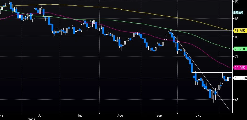 Die mittel- bis langfristigen Perspektiven für BASF bleiben gut, die Bewertung relativ günstig. Die Aktie hätte bei einem Sprung über die Marke von 71,32 Euro noch Luft bis 81,77 Euro, was im "best case" sogar noch in diesem Jahr möglich wäre. Mutige, trading-orientierte Anleger können weiter an Bord bleiben. Der Stopp sollte bei 64,00 Euro belassen werden.