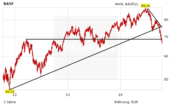 BASF ist zweifellos ein hervorragendes Unternehmen, mit starkem Management, einer soliden Bilanz und einer breiten, strategisch sinnvollen Positionierung. Dennoch sollten die Nachfrageschwäche in der europäischen Chemiebranche, die aktuelle Marktverfassung und das trübe Chartbild nicht unterschätzt werden. Anleger sollten bei dem ausgestoppten DAX-Titel zunächst noch eine Bodenbildung abwarten.