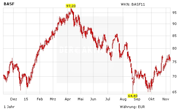 Denn die Experten des Instituts haben nach einer Investorenveranstaltung den fairen Wert für die BASF-Papiere von 90 auf 84 Euro gesenkt. Die Einstufung wurde indes auf "Hold" belassen. Analyst Peter Clark betonte, wegen schwieriger konjunktureller Rahmenbedingungen habe er seine Prognosen für den Chemiekonzern reduziert. Für die Aktie sprächen jedoch der starke Cashflow und die Dividendenrendite von knapp vier Prozent.