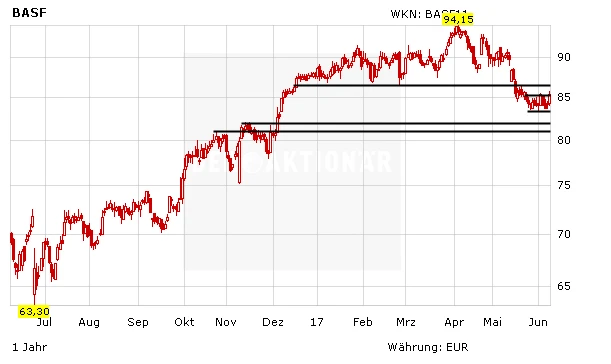Wie sowohl auf unserer Online-Seite als auch in zahlreichen Print-Artikeln bereits mehrfach betont: Die Aktie von BASF ist ein sehr gutes Langzeitinvestment (siehe in der Titelstory der Ausgabe 14/2017 „Aktien für unsere Kinder“). Wer also einen langen Anlagehorizont hat, dürfte mit BASF über die kommenden Jahre hinweg wohl wenig falsch machen.