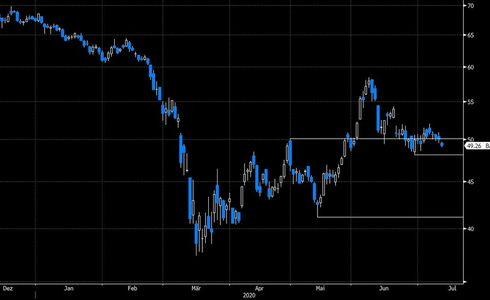 Denn sollte der Support bei 48,12 Euro fallen, würde sich das Chartbild des DAX-Titels wieder deutlich eintrüben. Da die BASF-Aktie ausgehend von dem Mitte Mai markierten Zwischentief bei 41,14 Euro relativ durchgängig nach oben gelaufen ist, existieren zwischen 48,12 und 41,14 Euro kaum ernstzunehmende Chartmarken. Rein charttechnisch betrachtet wäre das Abwärtspotenzial beim Bruch der Marke von 48,12 Euro relativ groß. Deshalb wäre es sehr wichtig, dass der Kurs nicht unter das Tief von Ende Juni rutscht.