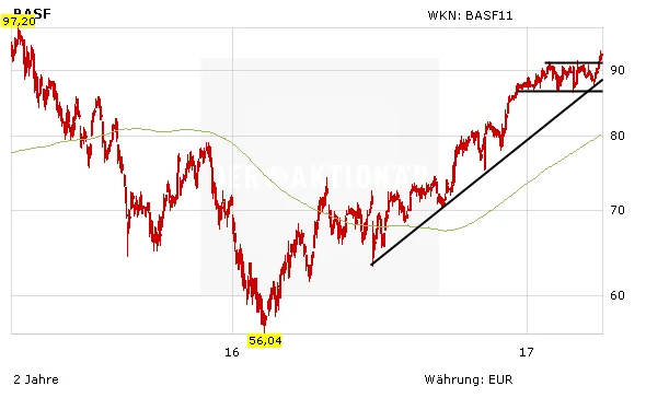 Damit gilt hier wie bei so vielen anderen Global Playern: Die Dividendenrendite (bei BASF aktuell 3,2 Prozent) ist weitaus attraktiver als die Anleiherendite. Anleger können daher bei den DAX-Titeln weiterhin zugreifen. Der Stopp sollte bei 68 Euro belassen werden.