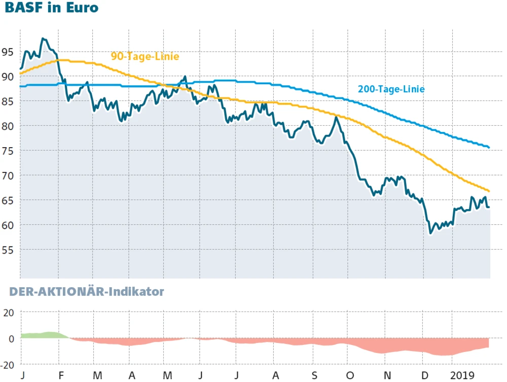 CFO Howard Ungerleider von DowDuPont setzte den schlechten Zahlen mit einem pessimistischen Ausblick auf die Weltwirtschaft 2019 noch einen oben drauf. Für BASF könnten die Entwicklungen des US-Konkurrenten auf ebenfalls schlecht ausfallende Quartalszahlen hindeuten. Kein gutes Omen für den 26. Februar, den Tag, an dem der Chemieriese sein Zahlenwerk präsentieren wird.