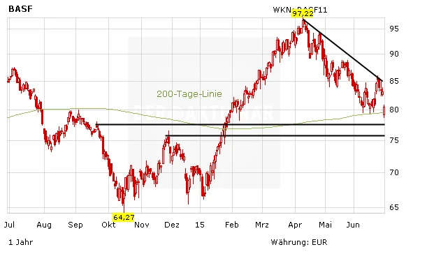 DER AKTIONÄR ist für BASF weiterhin optimistisch. Mittelfristig sind die Aussichten des Weltmarktführers weiterhin glänzend. Zudem ist die Bewertung mit einem KGV von 16 noch immer günstig. Analysten rechnen bei der nächsten Dividendenzahlung im Mai 2016 mit einer Ausschüttung von 2,90 Euro je Aktie, was einer Dividendenrendite von mehr als drei Prozent auf dem aktuellen Kursniveau entspricht. Den Stopp sollten Anleger bei 68 Euro setzen.