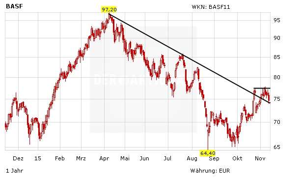 So hat Bernstein-Research-Analyst Jonas Oxgaard in seiner jüngsten Sektorstudie die BASF-Anteilscheine zwar auf "Outperform" mit einem Kursziel von 93 Euro, was knapp 25 Prozent über dem gestrigen Schlusskurs liegt, belassen. Er verwies aber darauf, dass seiner Ansicht nach in der sich abzeichnenden Konsolidierung der weltweiten Agrochemiebranche BASF ein Kaufgebot für den US-Agrarkonzern Monsanto abgeben könnte. Denn in diesem Fall wäre hierfür laut Oxgaard eine Kapitalmaßnahme in Milliardenhöhe zu befürchten.