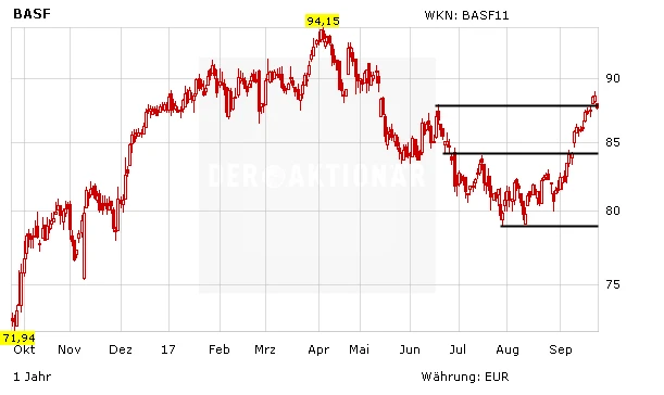 Die BASF-Aktie hat indes ihren Höhenflug fortgesetzt und dabei wichtige charttechnische Marken übersprungen. Allerdings wäre nun auch eine Korrektur durchaus gesund. DER AKTIONÄR bleibt jedenfalls für die Qualitätstitel positiv gestimmt und rät weiter zum Kauf (Stopp: 68,00 Euro).