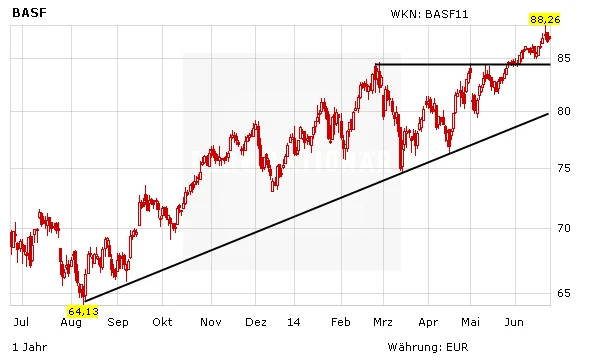 Die Experten der britischen Großbank Barclays haben die Aktie von BASF erneut näher unter die Lupe genommen. Ergebnis der jüngsten Studie: Der faire Wert für die Papiere des Chemie-Weltmarktführers wurde von 90 auf 101 Euro angehoben. Die Einstufung wurde auf "Overweight" belassen. Analyst Andreas Heine zeigte sich nun zuversichtlicher für das mittelfristige Gewinnpotenzial des DAX-Konzerns. Nach einer zyklischen Erholung insbesondere in Europa im Jahr 2014 dürfte die Chemieindustrie in den kommenden Jahren nachhaltig wachsen. Seine Gewinnschätzungen für BASF für 2015 und 2016 lägen über den durchschnittlichen Markterwartungen.