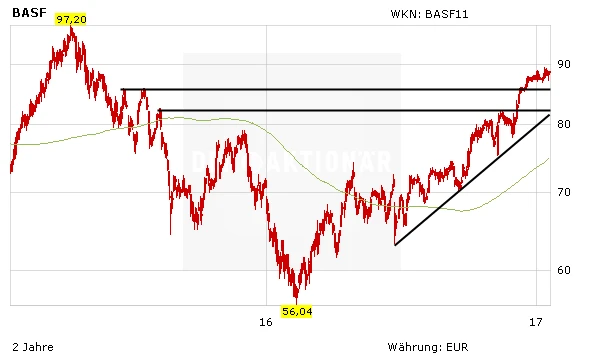 Indes haben gestern auch die Analysten der UBS sowie die Experten der Deutschen Bank (Kursziel: 95,00 Euro) zum Kauf der BASF-Papiere geraten.