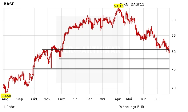 Der Chemieriese BASF hat gestern gute Zahlen für das zweite Quartal vorgelegt und den Jahresausblick leicht erhöht. Dennoch ging es mit dem Aktienkurs deutlich nach unten, wodurch sich das Chartbild weiter empfindlich eingetrübt hat. Geht es nach der Mehrheit der Analysten, ist der DAX-Titel aber jetzt schon klar unterbewertet.
