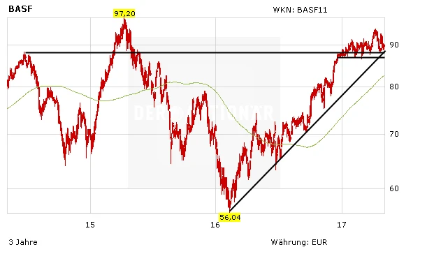 DER AKTIONÄR bleibt indes von der BASF-Aktie überzeugt. Der Konzern ist hervorragend positioniert, verfügt über eine solide Bilanz und ein starkes Management. Die Bewertung ist moderat und die Aussichten sind dank der florierenden Konjunktur gut. Zudem lockt eine regelmäßig steigende Dividende und die ordentliche Dividendenrendite von 3,3 Prozent. Anleger können hier weiterhin zugreifen (Stopp: 68,00 Euro).