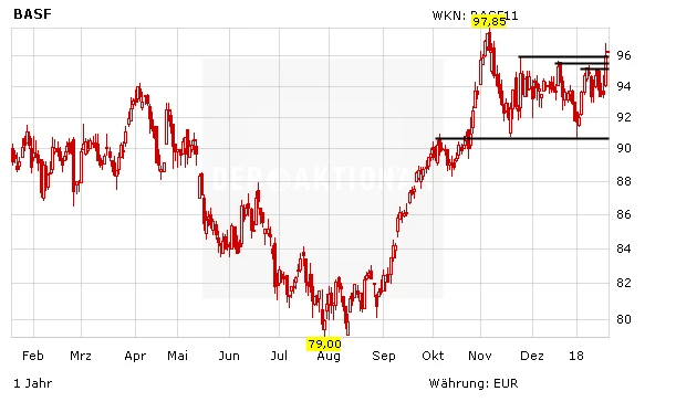 Die starken Zahlen haben nicht nur dazu geführt, dass der Aktenkurs über den Widerstandsbereich zwischen 95,00 und 95,98 Euro klettern konnte und kurz vor dem Sprung auf ein neues Allzeithoch steht. Einige Marktteilnehmer spekulieren nach dem Ergebnisanstieg um 50 Prozent nun auf eine stärkere Dividendenanhebung als die zuletzt üblichen zehn Cent (wo noch weitaus höhere Dividendenrenditen als bei BASF locken, erfahren Sie hier). Die Aktie bleibt jedenfalls weiterhin ein klarer Kauf, Anleger sollten nun den Stopp zur Gewinnsicherung auf 75,00 Euro nachziehen.