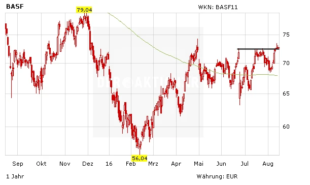 DER AKTIONÄR hält indes weiterhin an seiner Kaufempfehlung für die Aktie von BASF fest. Die Bewertung der Dividendenperle ist aktuell moderat, die mittel- bis langfristigen Perspektiven gut. Zudem hat sich das Chartbild zuletzt wieder etwas aufgehellt. Der Stopp sollte bei 58,00 Euro belassen werden.