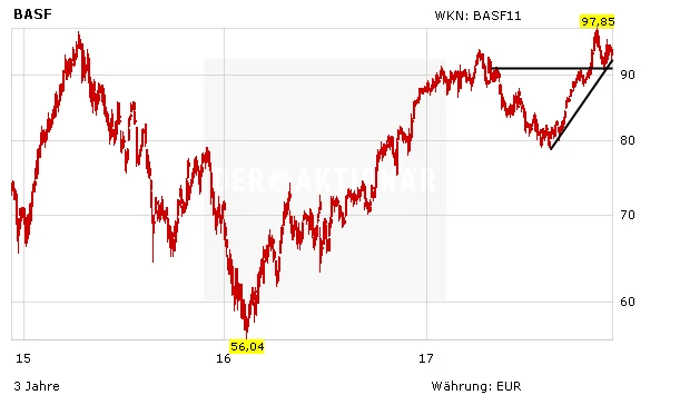 So verweist Analyst Tim Jones darauf, dass sich der Sektor erst im zweiten Jahr eines „langfristigen Aufwärtszyklus“ befindet. Er rät Investoren deshalb weiterhin zum Kauf der Aktie des Ludwigshafener DAX-Konzerns und hebt das Kursziel von 104 auf 109 Euro an (die Experten von Kepler Cheuvreux sehen sogar ein noch etwas größeres Aufwärtspotenzial).