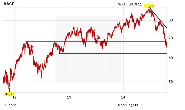 Die BASF-Aktie setzte ihre Talfahrt auch im gestrigen Handel fort, im vorbörslichen Handel kann der Kurs hingegen endlich wieder etwas zulegen. BASF ist zwar ein hervorragendes Unternehmen, mit starkem Management, einer soliden Bilanz und einer breiten, strategisch sinnvollen Positionierung. Dennoch sollten die Nachfrageschwäche in der europäischen Chemiebranche, die aktuelle Marktverfassung und das trübe Chartbild nicht unterschätzt werden. Anleger bleiben bei dem günstig bewerteten DAX-Titel daher vorerst an der Seitenlinie und warten eine Aufhellung des Chartbildes ab.