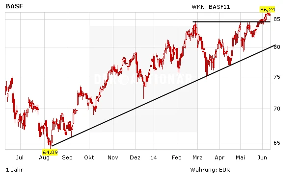 BASF bleibt in der Chemiebranche ein Basisinvestment. Der Konzern ist hervorragend aufgestellt und sollte von Wachstum der Schiefergasbranche deutlich profitieren. Mit einem KGV von 15 für 2014 bleibt der Chemieriese günstig bewertet. Der Aufwärtstrend sollte sich fortsetzen.