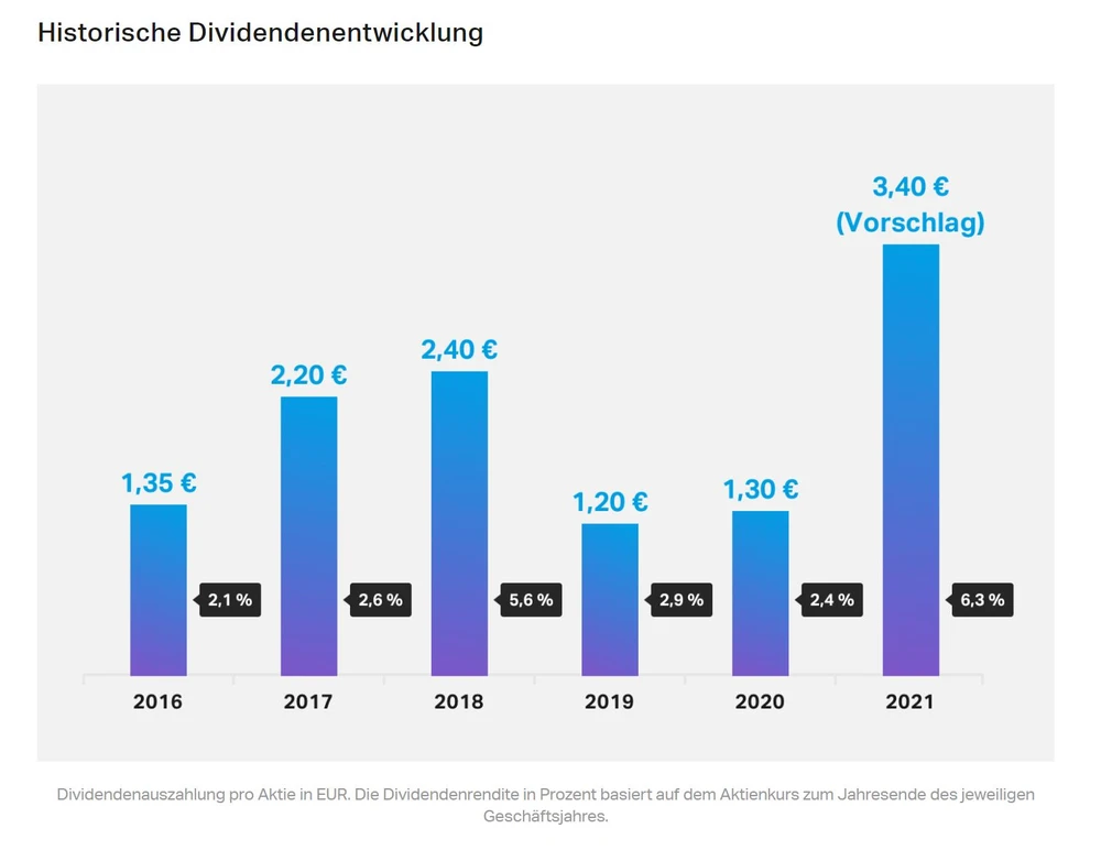 So hat Covestro angekündigt, für das enorm stark gelaufene Geschäftsjahr 2021 eine Ausschüttung von 3,40 Euro je Aktie vornehmen zu wollen. Geben die Aktionäre bei der Hauptverammlung dafür grünes Licht, werden allen Anlegern, welche die Covestro-Papiere zum Ende (!) des Handelstages am 21.4. im Depot gehabt haben, Anfang kommender Woche 3,40 Euro gutgeschrieben. Daraus würde sich ausgehend vom aktuellen Kursniveau eine Rendite von 7,7 Prozent errechnen.