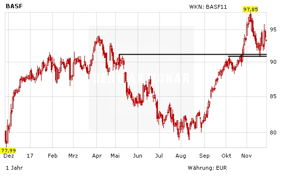 Die DZ Bank stuft die BASF-Anteile vor diesem Hintergrund weiterhin mit „Kaufen“ ein und beziffert das Kursziel auf 105,00 Euro. Auch DER AKTIONÄR hält an seiner Kaufempfehlung fest. Der Stoppkurs sollte bei 72,00 Euro belassen werden.