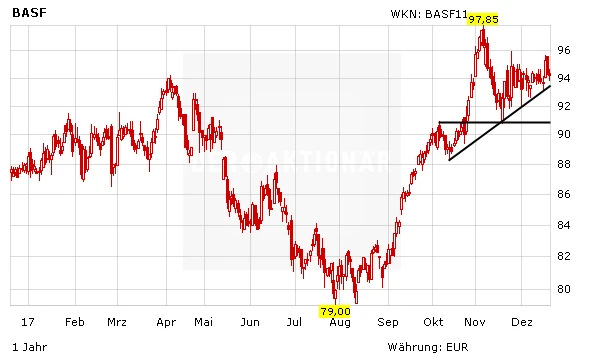 Die Aussichten für BASF bleiben gut, der Konzern ist sehr breit und clever aufgestellt, verfügt über eine solide Bilanz und ein starkes Management. Die immer noch günstig bewertete Aktie ist charttechnisch aussichtsreich und lockt aktuell mit einer attraktiven Dividendenrendite von 3,3 Prozent.