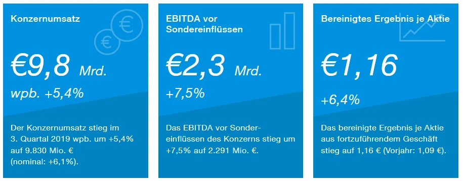 Das bereinigte Ergebnis vor Zinsen, Steuern und Abschreibungen (Ebitda) legte um 7,5 Prozent auf 2,3 Milliarden Euro zu. Beide Werte lagen leicht über den durchschnittlichen Analystenschätzungen.