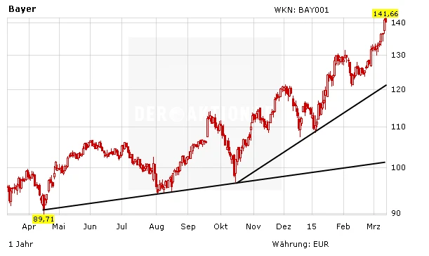 Eine beeindruckende Rallye liegt hinter der Bayer-Aktie. Seit Mitte Oktober 2014 hat die Aktie über 40 Prozent zugelegt. Dank eines starken Ausblicks hat der DAX-Konzern diese Woche erneut ein Rekordhoch erreicht. Glaubt man den aktuellen Einschätzungen der Analysten, ist das Ende der Fahnenstange nun aber erreicht.