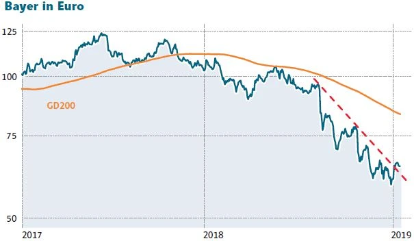 Kann Bayer seine jüngst gewonnene Stärke weiterhin zeigen, könnte sich eine Erholungsbewegung bis in den Bereich von 80,00 Euro ergeben. Knapp darüber verläuft auch die 200-Tage-Linie, die als massiver Widerstand gilt. Anleger sollten jedoch die jüngsten Tiefstände genau im Blick behalten. Ein Rutsch darunter würde erneutes kurzfristiges Abwärtspotenzial bedeuten. Positionen sollten deswegen mit einem Stopp etwas unterhalb des Dezembertiefs, das bei 58,34 Euro markiert wurde, platziert werden.