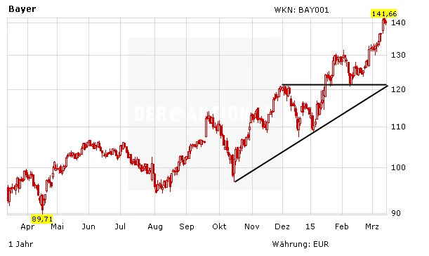Mit starken Zahlen und einem verbesserten Ausblick ist die Rallye bei Bayer auch fundamental unterlegt. Die Euro-Abwertung und der geplante Börsengang der Kunststoffsparte stützen den Wert zusätzlich. DER AKTIONÄR rechnet deshalb mit einer Fortsetzung des Aufwärtstrends. Anleger bleiben investiert.