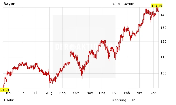 DER AKTIONÄR rät ebenfalls, weiter an Bord zu bleiben. Bayer ist stark aufgestellt und verfügt über ein erfahrenes Management. Mit dem geplanten Börsengang der Kunststoffsparte erhält die Aktie zusätzliche Kursfantasie. Zudem profitiert der Konzern von der Abwertung des Euro.
